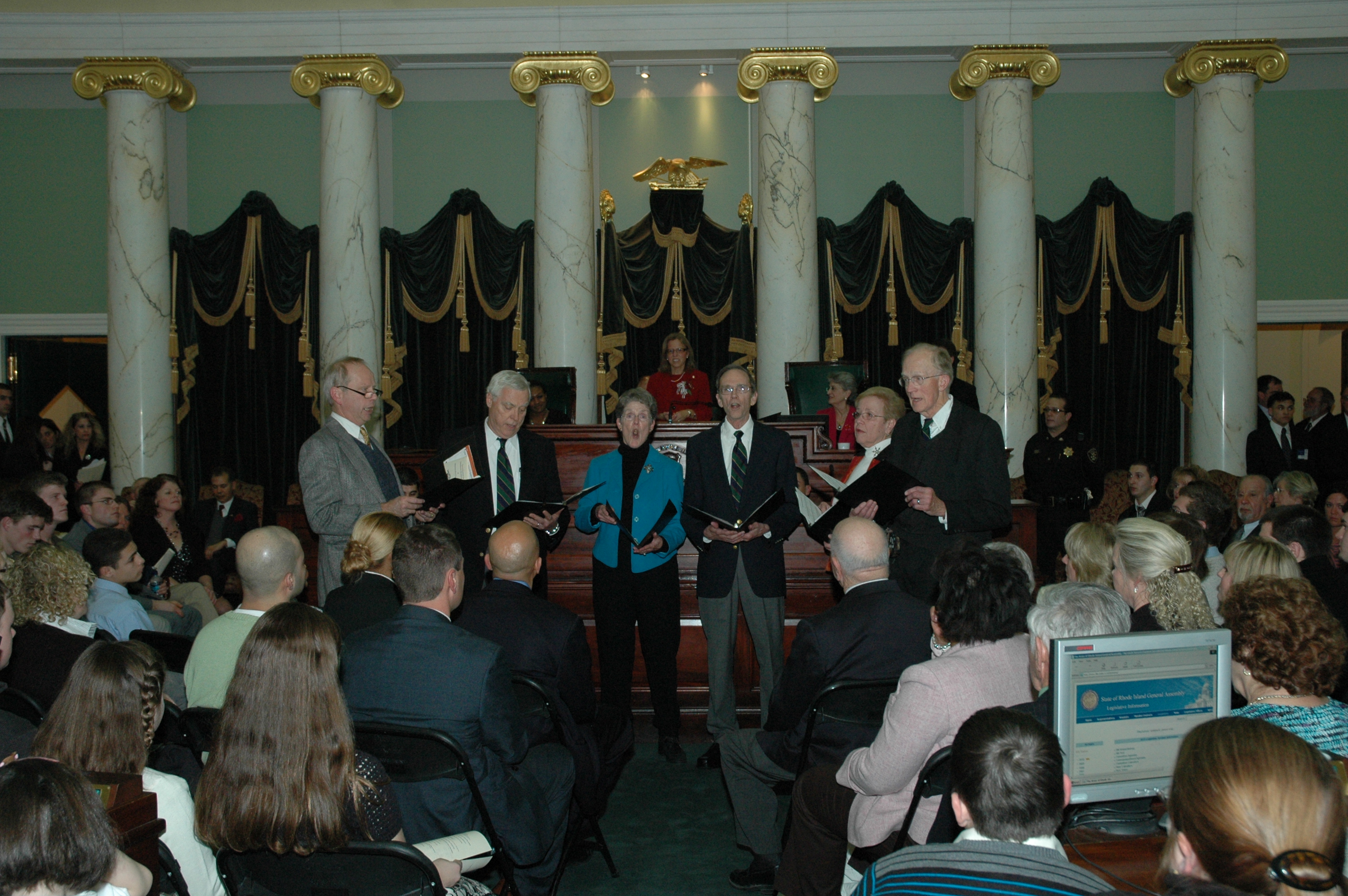 Members of the JCC sing our National Anthem as well as “America, the Beautiful” at the opening of the Rhode Island Senate, January 2011